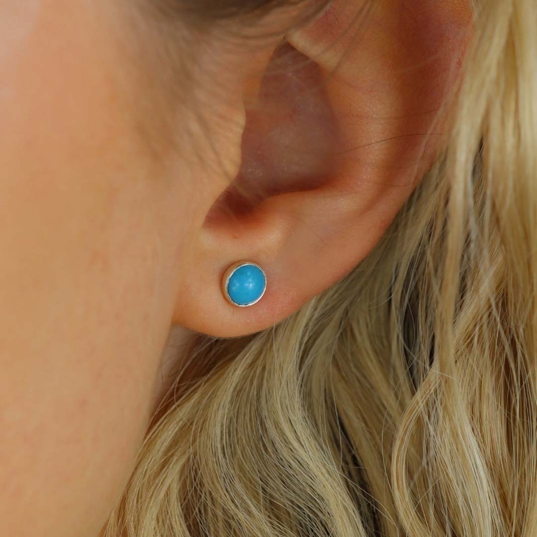 A pair of Turquoise cabochon ear studs made in Sterling Silver. Gross weight approx. 0.8g Measuring approx. 6.5mm
