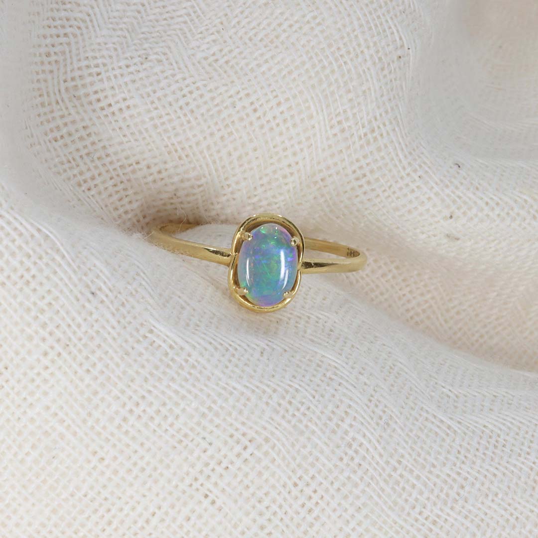A pre-loved Opal ring made in 18ct yellow Gold, is delightful.