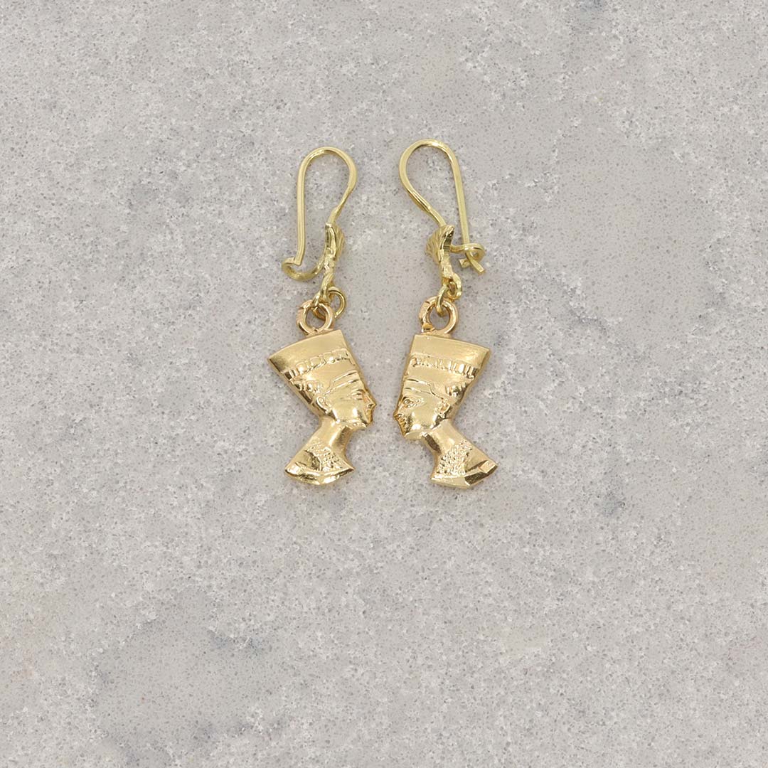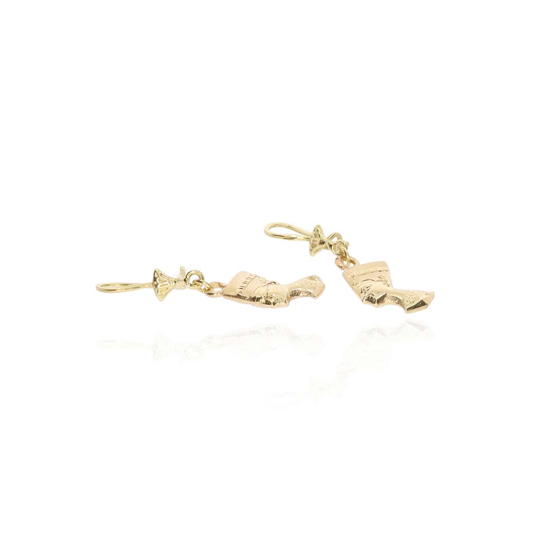 A pair of pre-loved “Queen Nefertiti” 18ct yellow Gold drop earrings. Condition: excellent Gross weight approx. 4.26g.