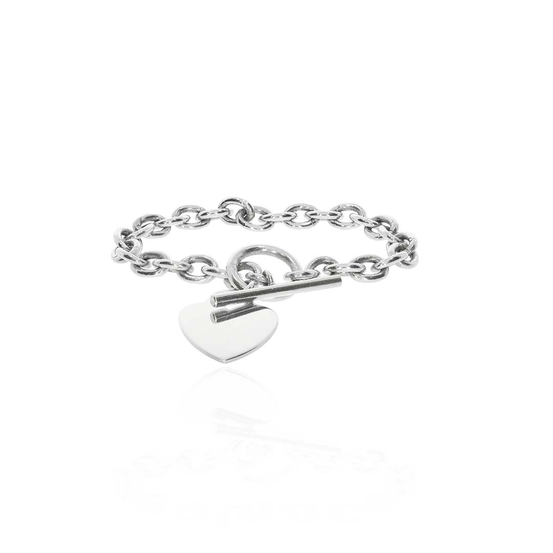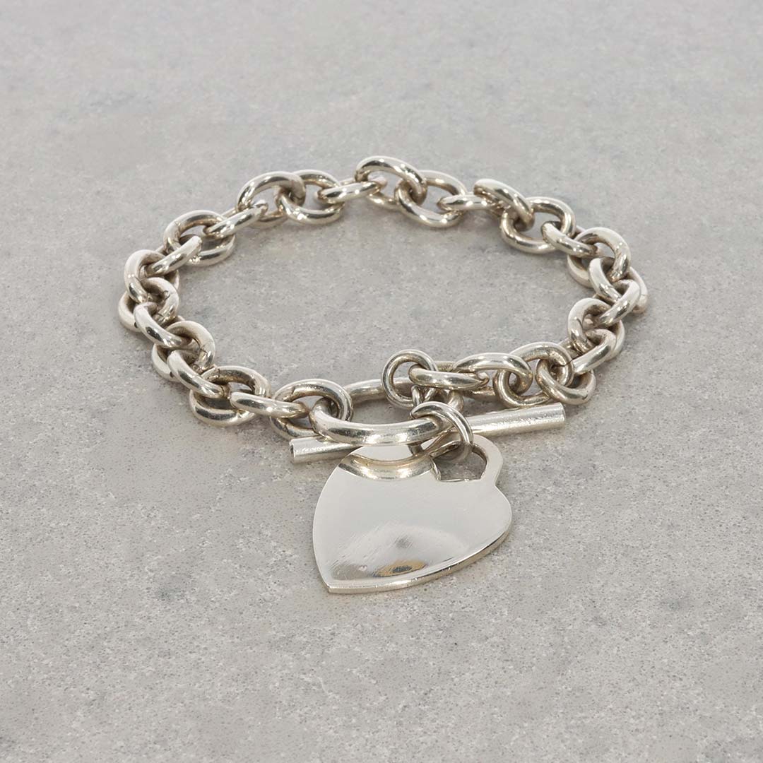 A preloved vintage Sterling Silver heart bracelet, fully hallmarked. Secure T-bar ring clasp.