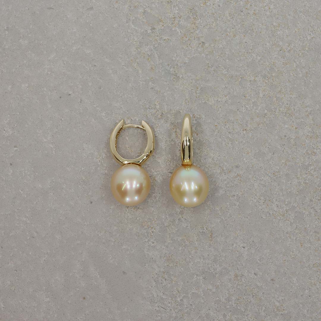 A pair of Golden South Sea (approx. 11mm) Pearl 18ct yellow Gold drop earrings, with their warm golden hues they make a wonderful statement.
