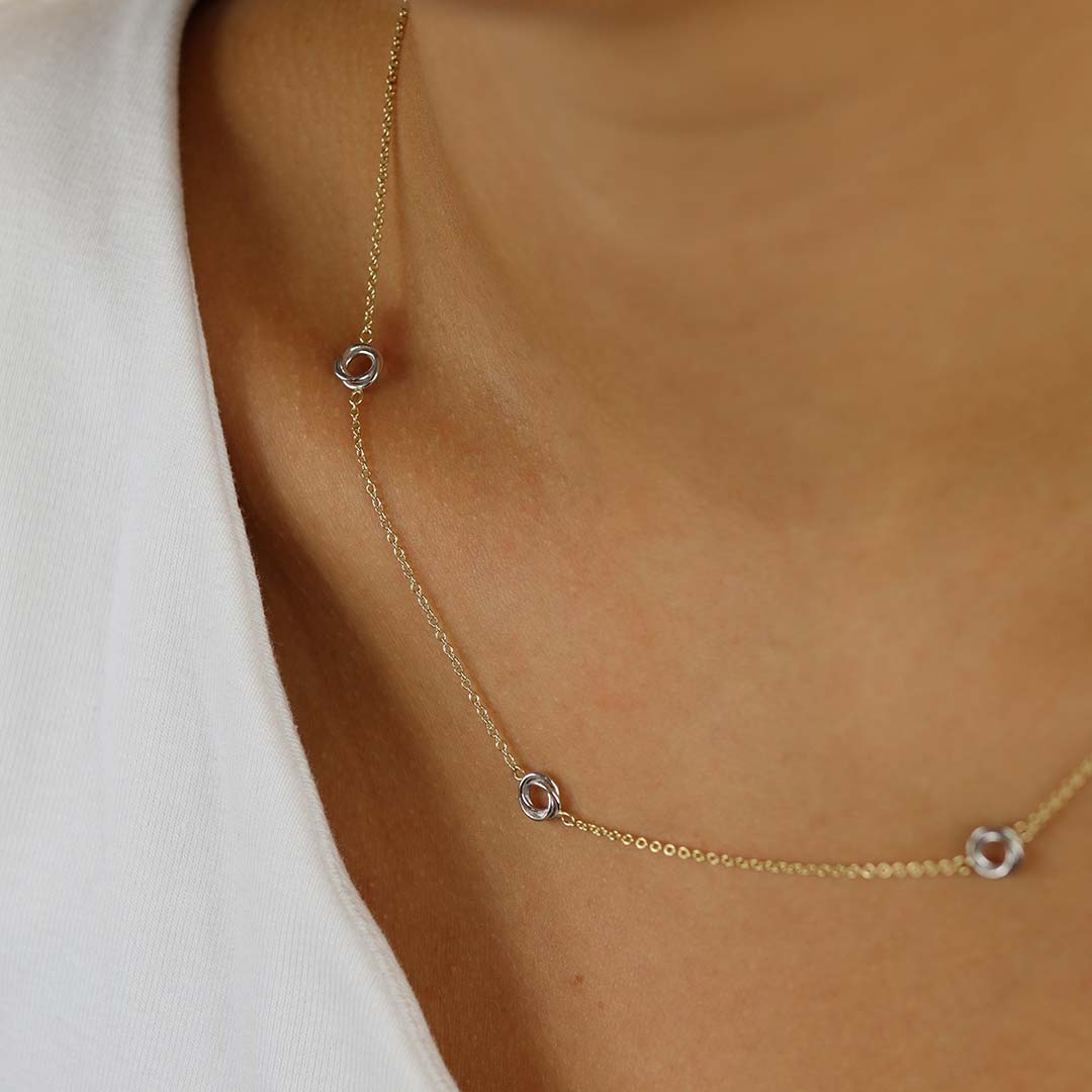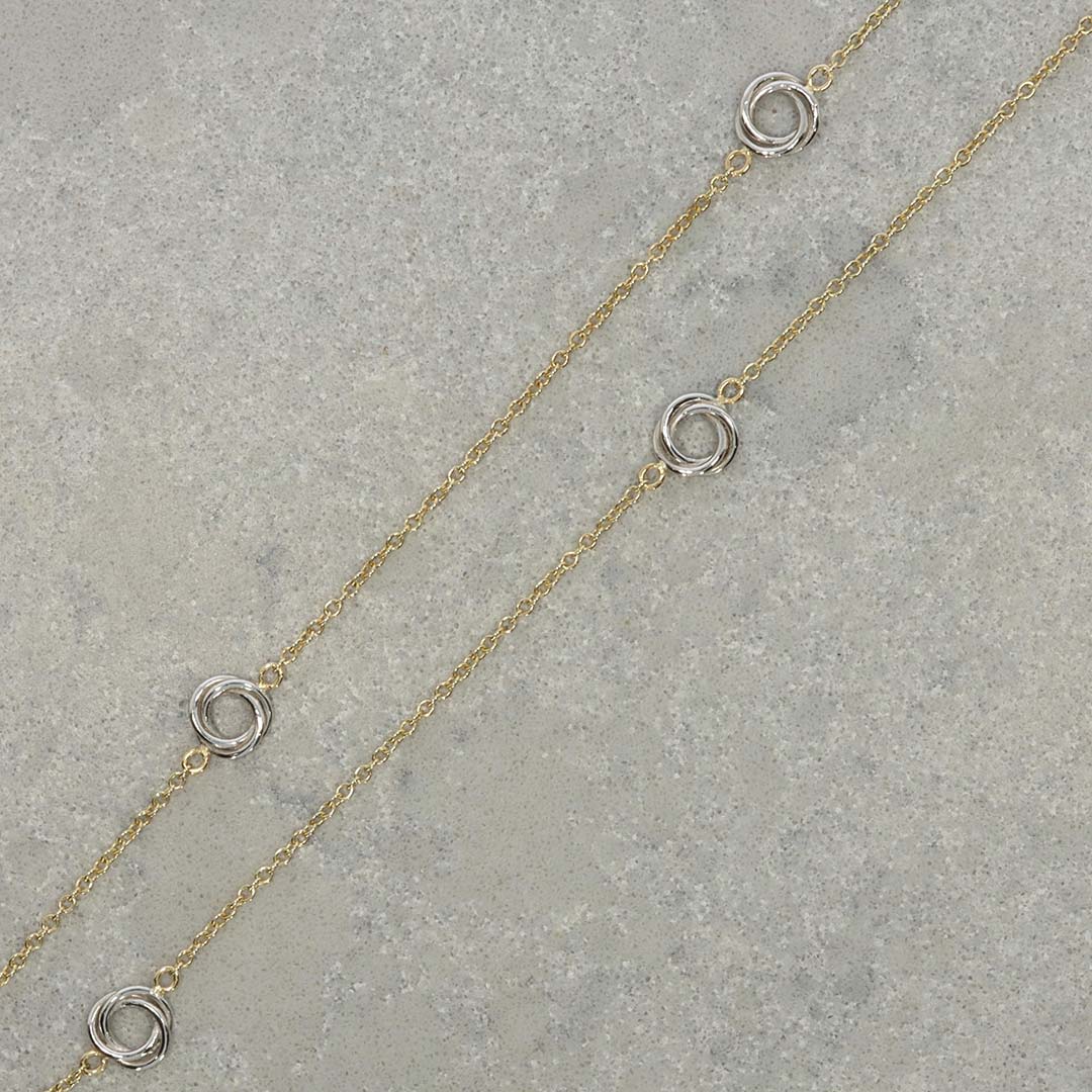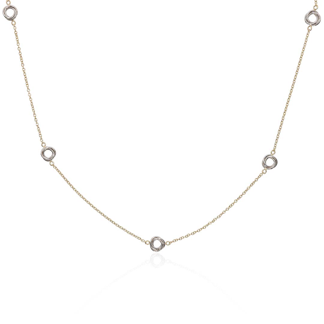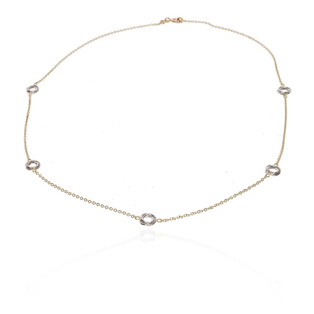A modern 9ct white gold knot (5 x 6mm) necklace with an 9ct yellow gold 18″ chain, makes the perfect gift. Gross weight approx. 2.8g