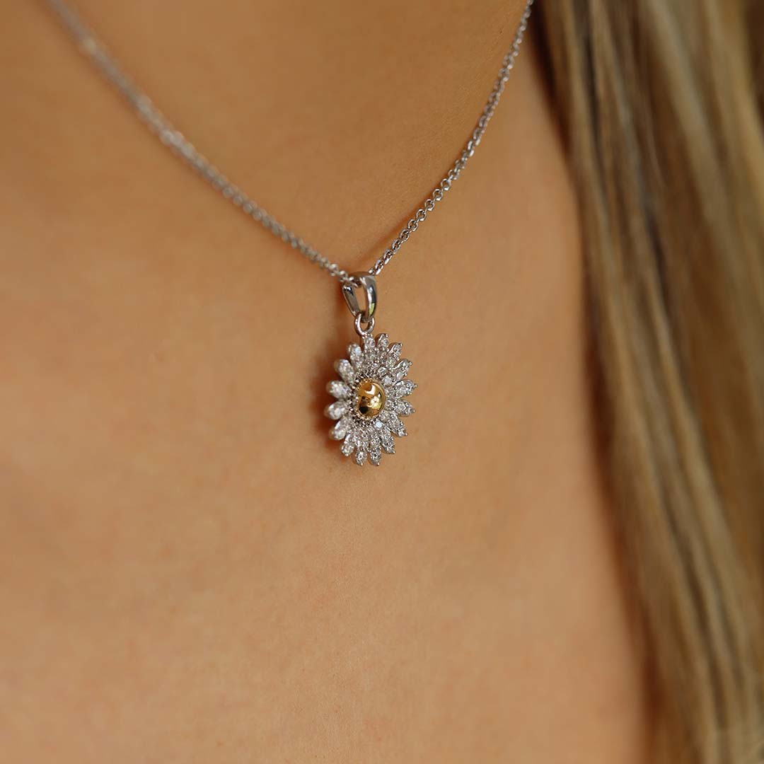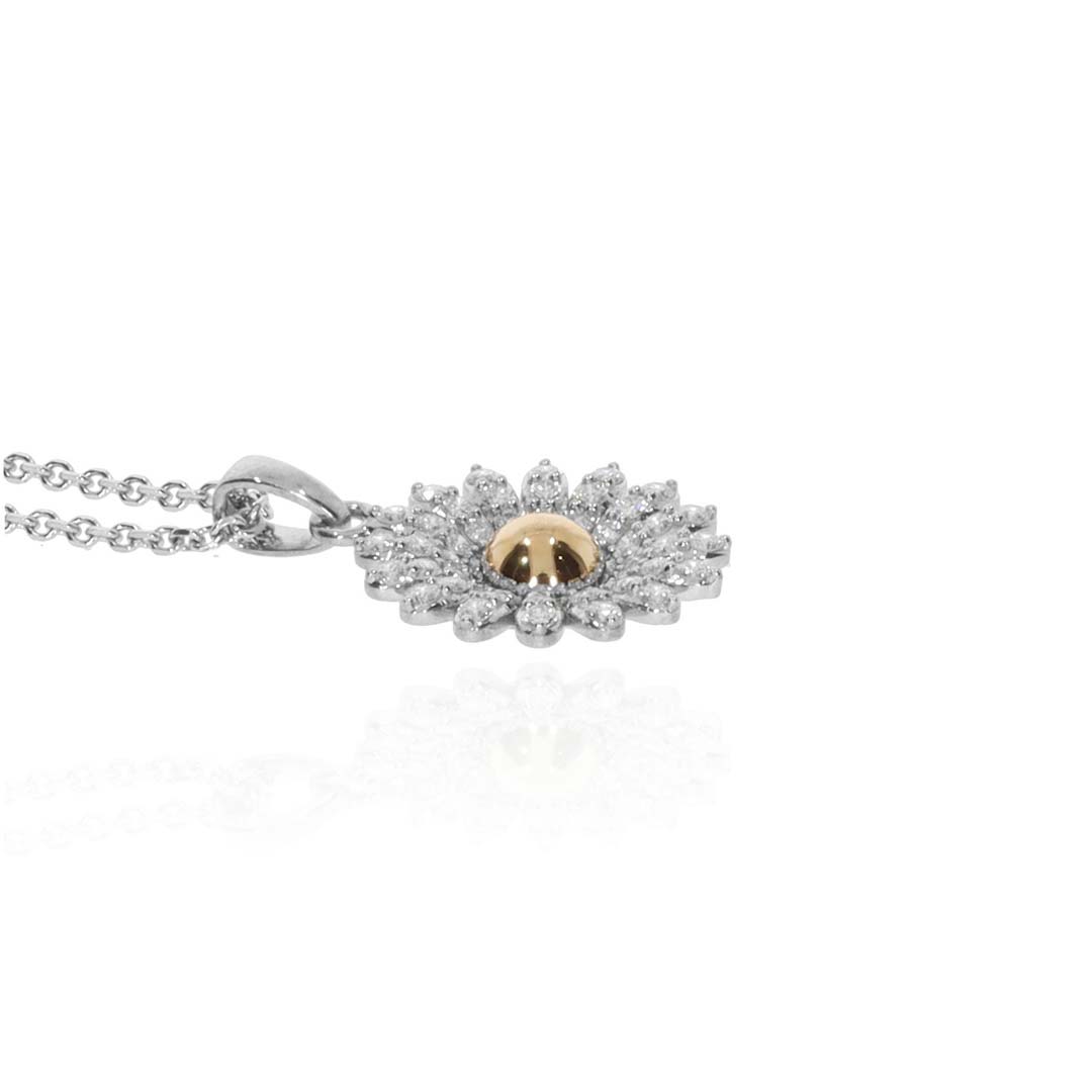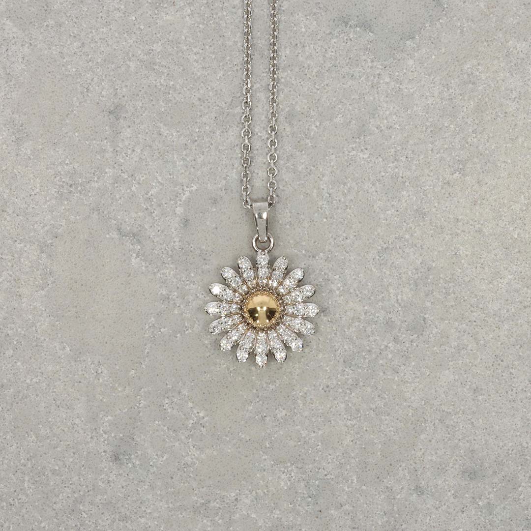 A round brilliant cut Diamond (approx. 0.72cts) Daisy pendant made in 18ct yellow and white Gold, is inspired by the beauty of the natural world. Measuring approx. 2.5 x 1.7cm Gross weight approx. 3.3g