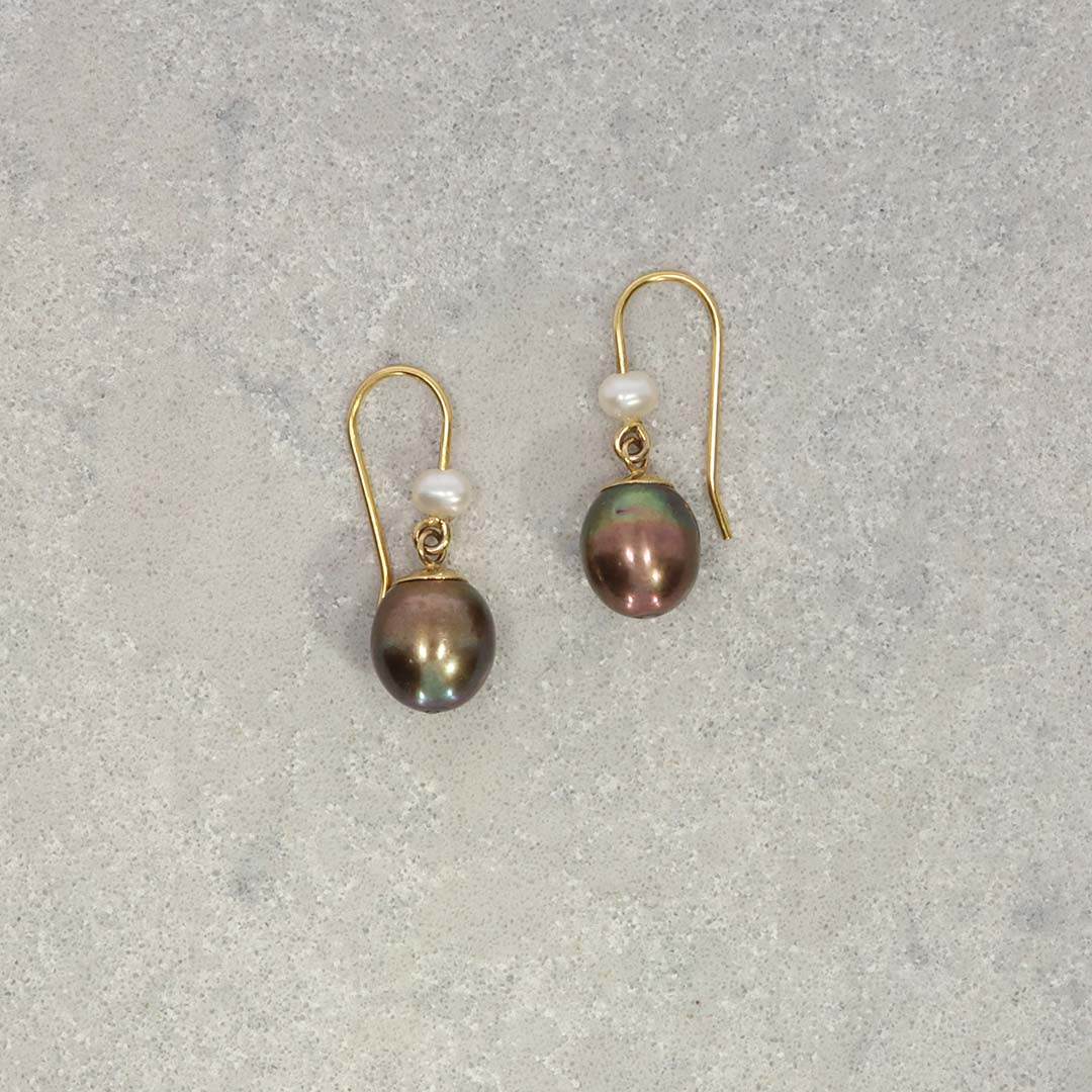 Tags: Bronze Cultured Pearls, Drop Pearl Earrings