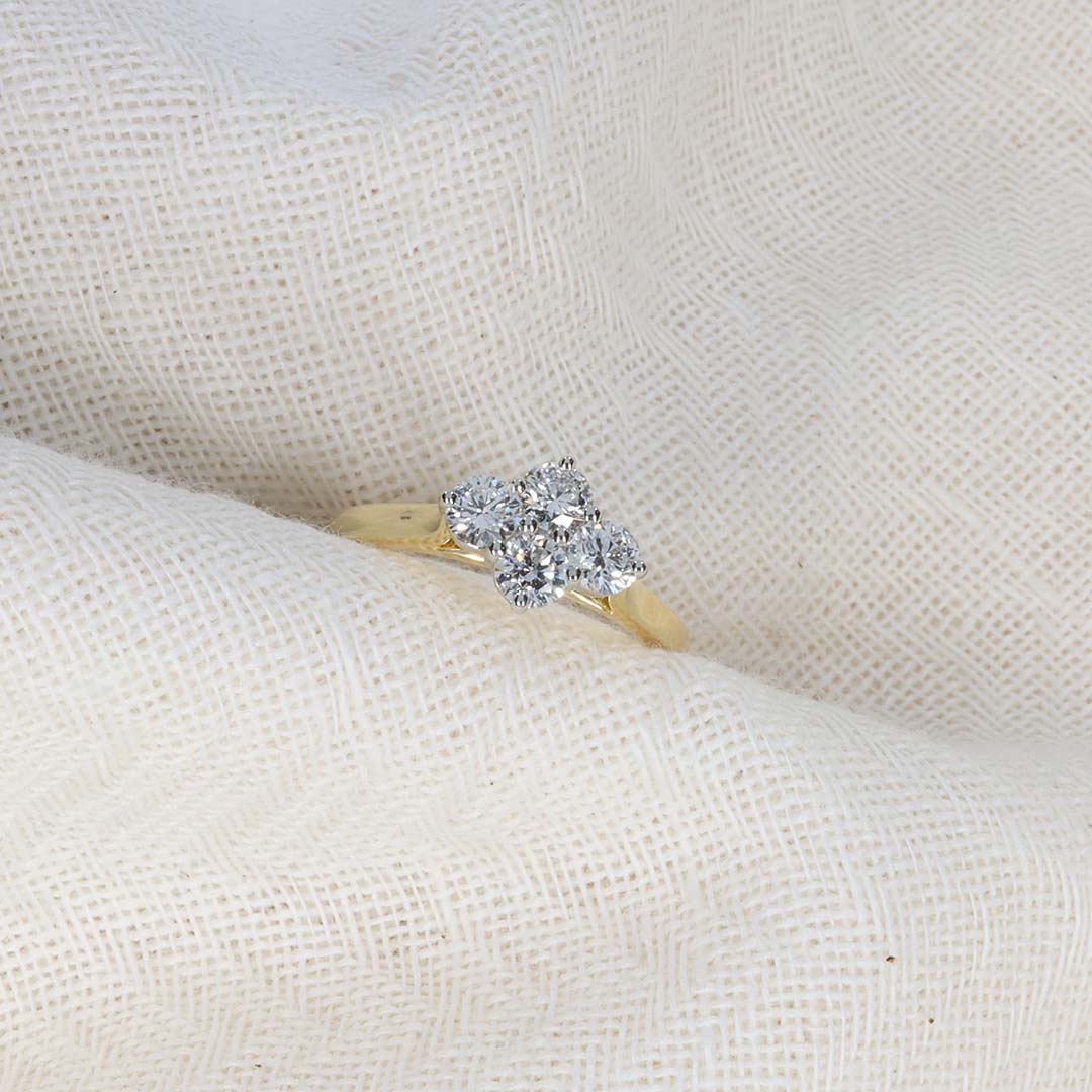 An exquisite round cut Diamond (approx. 0.75cts) cluster ring made in 18ct yellow Gold and Platinum, looks extremely elegant.
