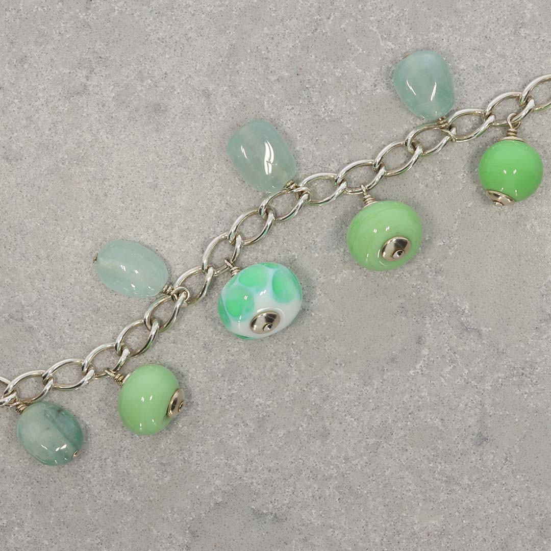 A pretty Murano Glass handmade by Heidi, green Beryl Sterling Silver bracelet.