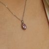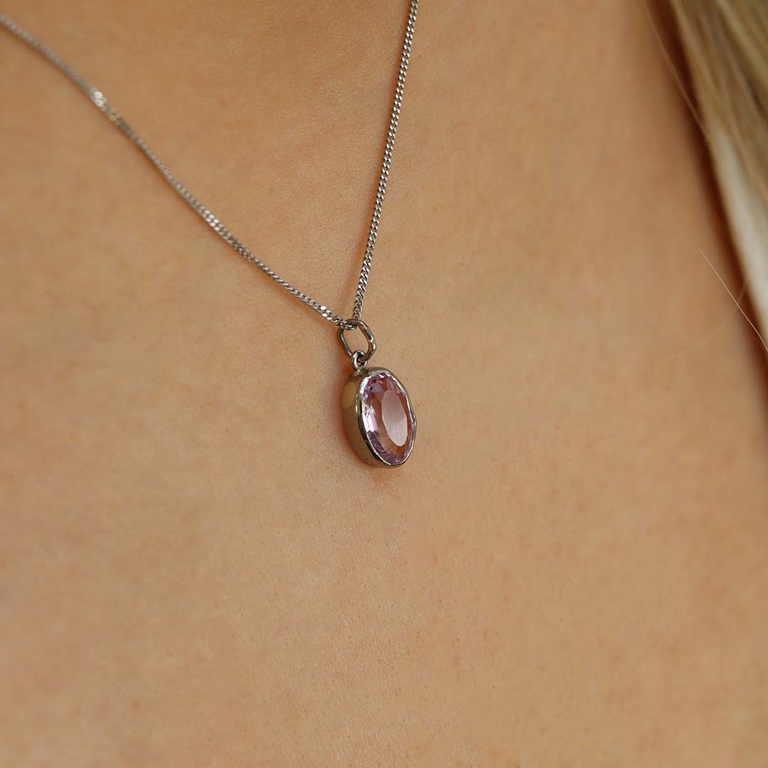 A pretty pink Topaz pendant beautifully handmade in 18ct white Gold. Measuring approx. 16 X 8mm. Gross weight approx. 1.2g.