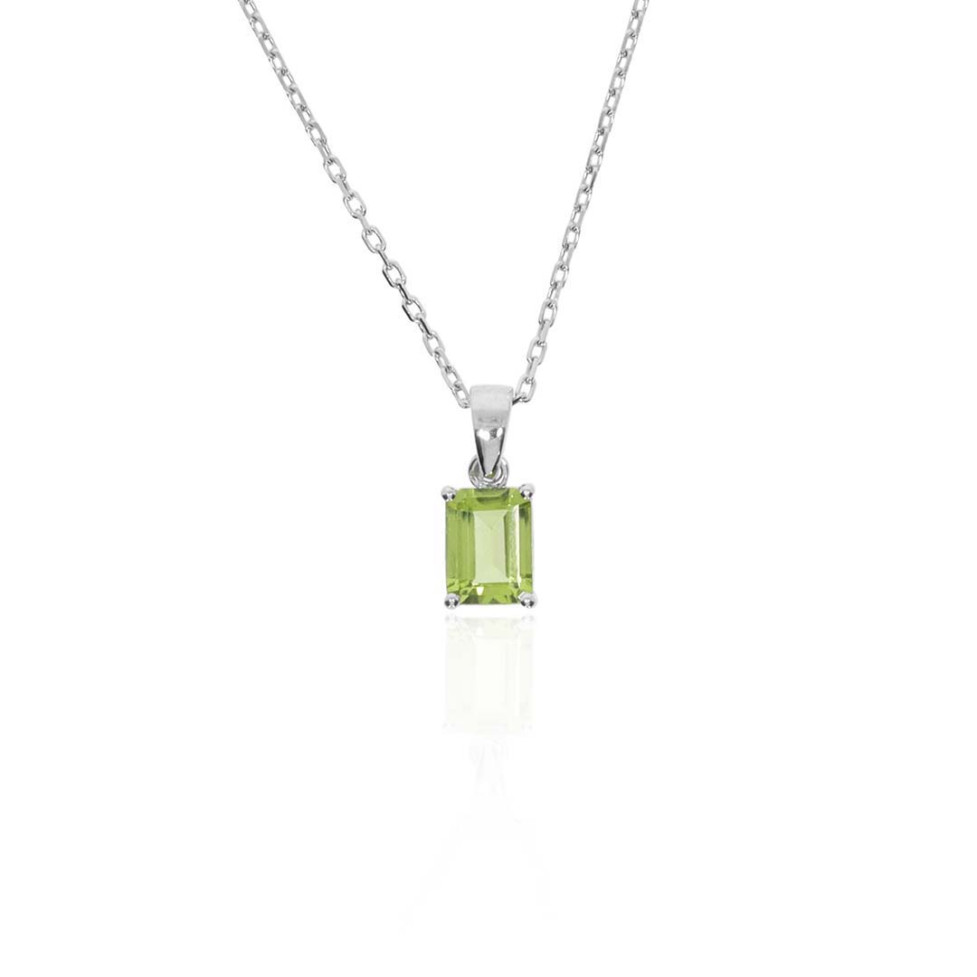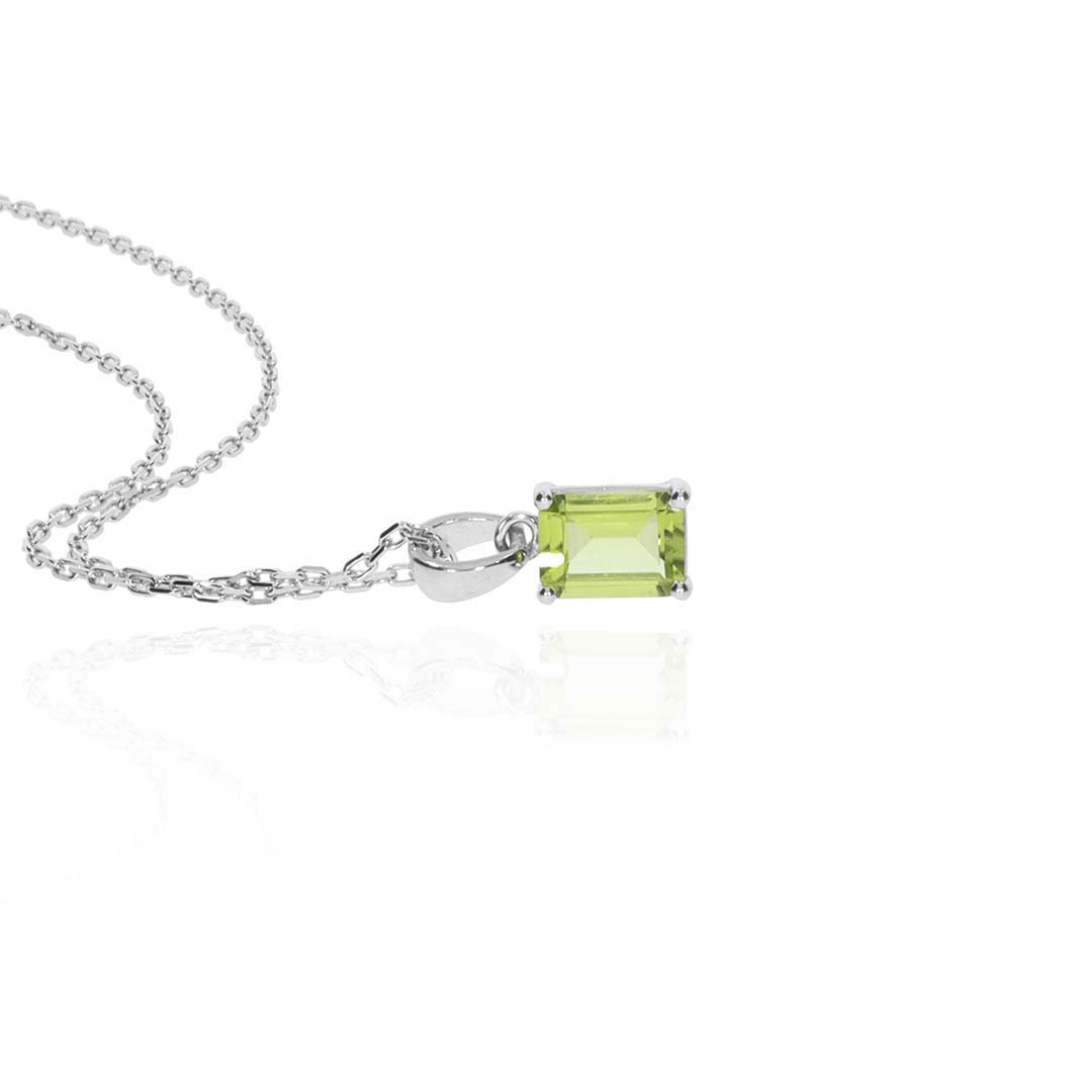 Pretty emerald cut Peridot (approx. 8x6mm) claw set pendant is beautifully made in Sterling Silver.