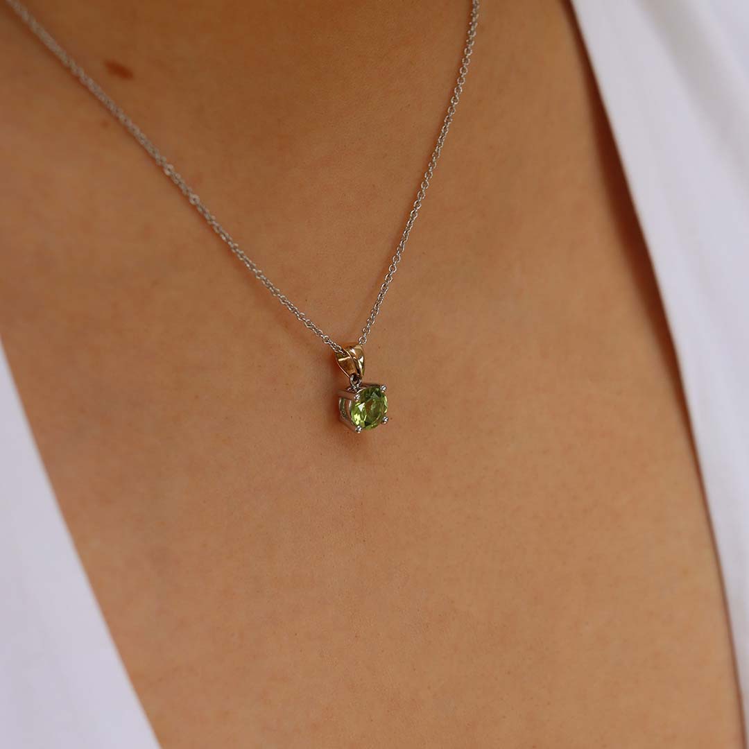 A stunning natural round Peridot (approx. 1.35cts) pendant made in 9ct yellow and white Gold.