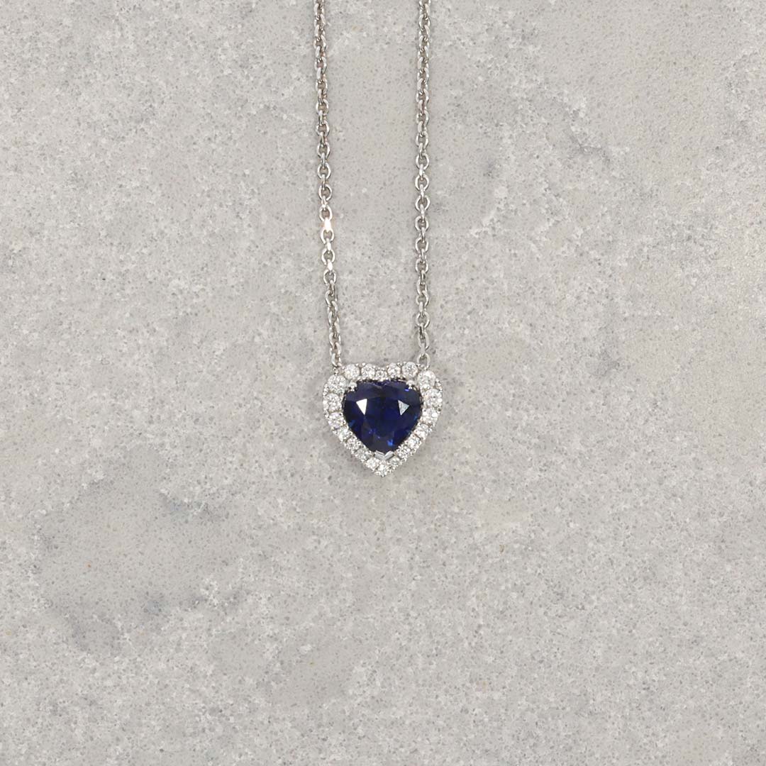 A Ceylon Sapphire (approx. 1.20cts) and Diamond (approx. 0.17cts) “Heart” cluster pendant made in 18ct white Gold, perfect for that special someone.