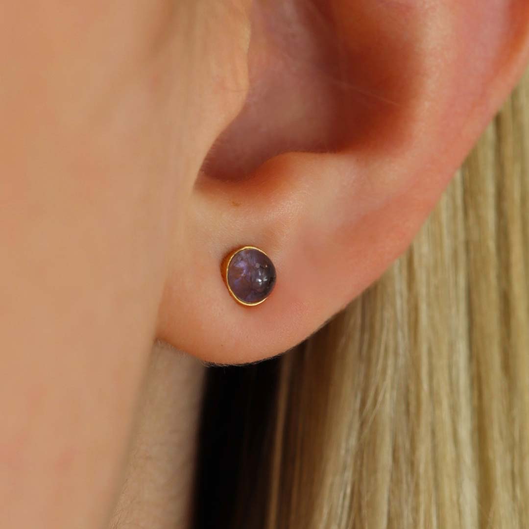 A pair of Iolite (approx. 5mm) rub-over set earrings, handmade in 9ct yellow Gold